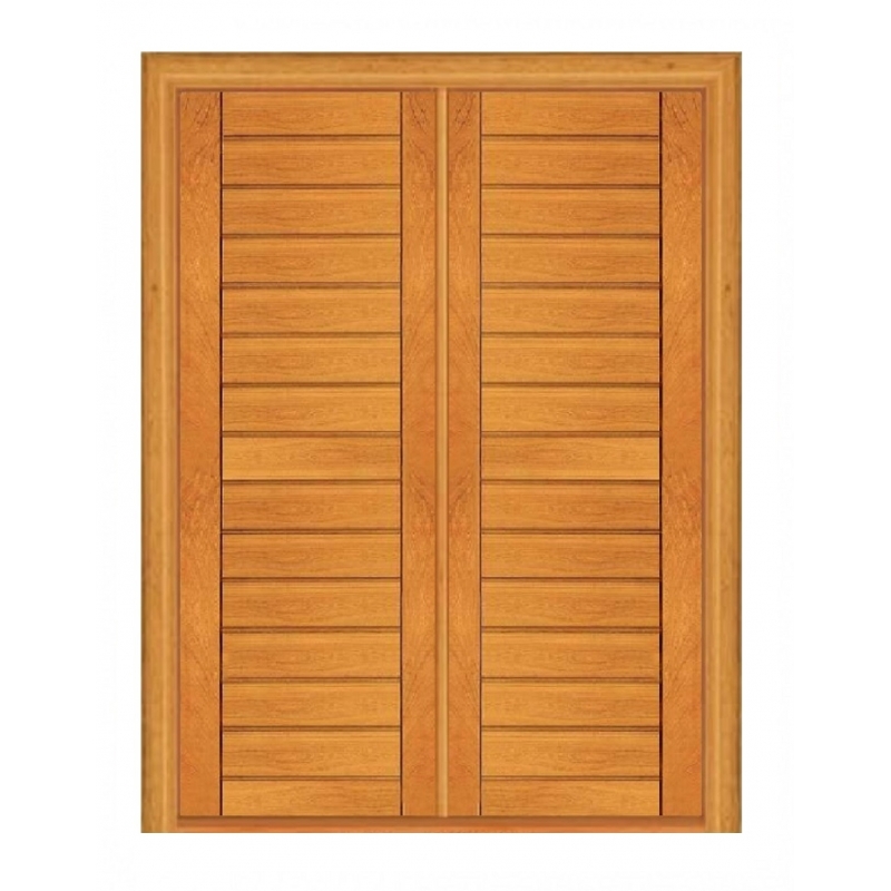 Porta com 02 folhas abrindo em giro. O conjunto é enviado sem dobradiças e fechadura.