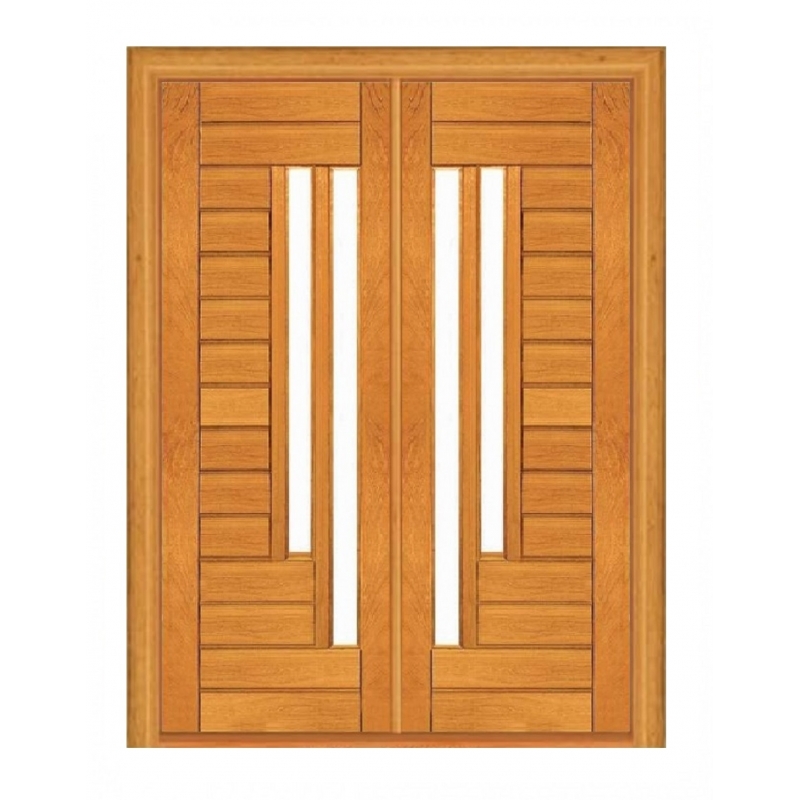 Porta com 02 folhas abrindo em giro. O conjunto é enviado sem dobradiças e fechadura.