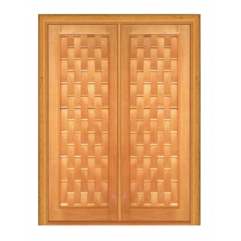 Porta com 02 folhas abrindo em giro. O conjunto é enviado sem dobradiças e fechadura.