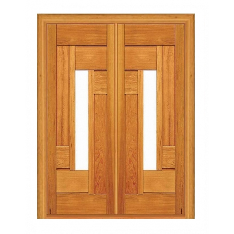 Porta com 02 folhas abrindo em giro. O conjunto é enviado sem dobradiças e fechadura.