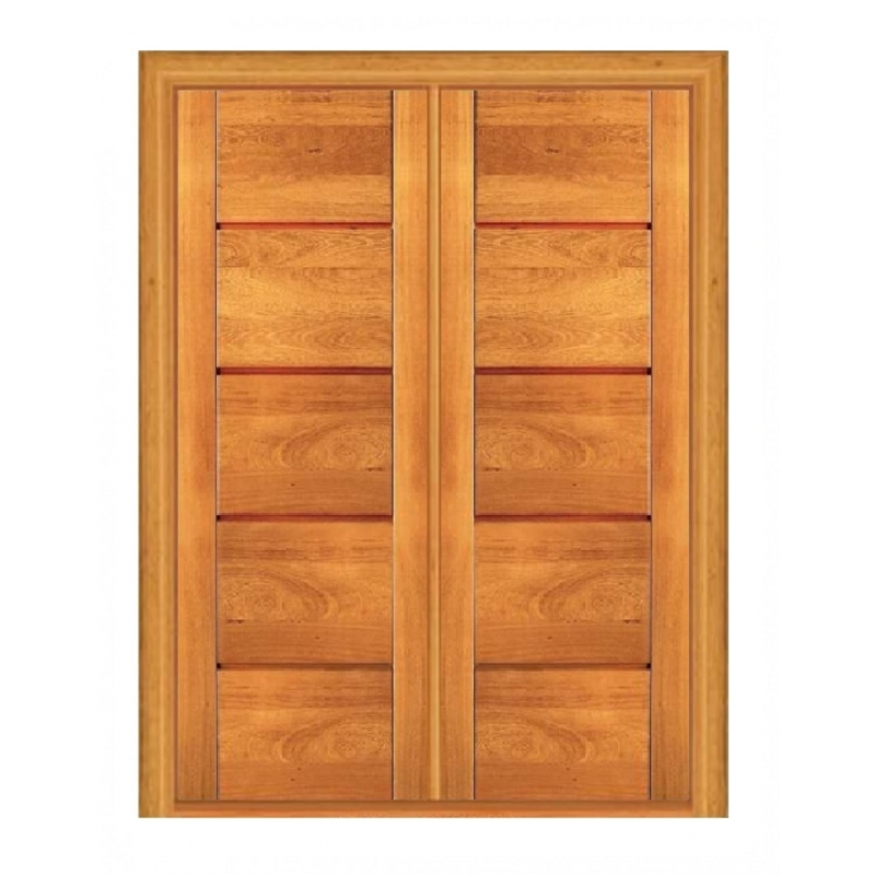 Porta com 02 folhas abrindo em giro. O conjunto é enviado sem dobradiças e fechadura.