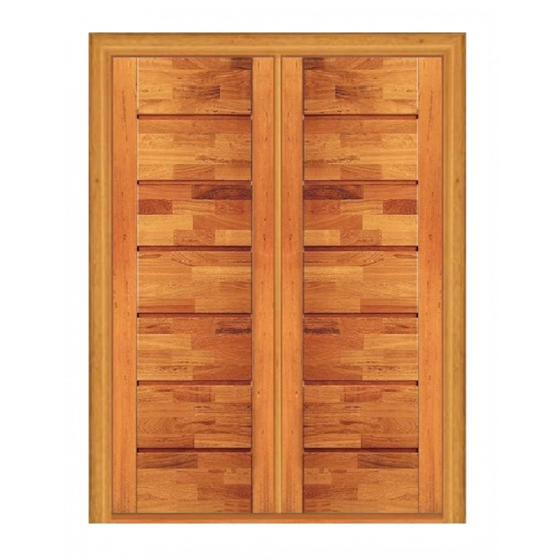 Porta com 02 folhas abrindo em giro. O conjunto é enviado sem dobradiças e fechadura.