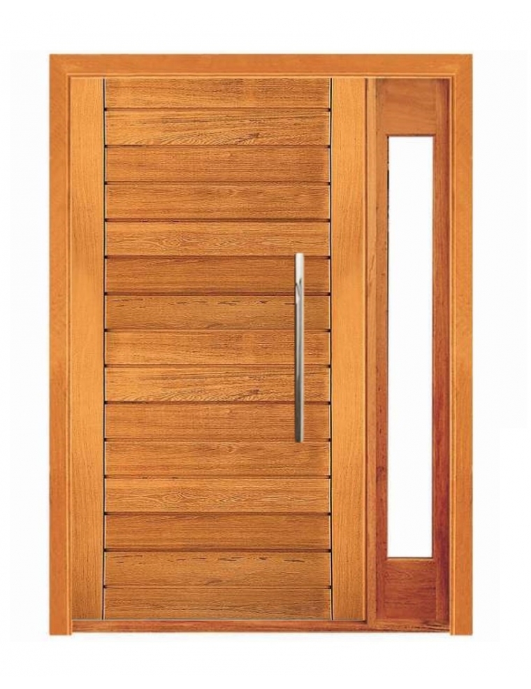 Porta Pivotante Contemporânea com Visor Lateral - Madeira Maciça - Angelim